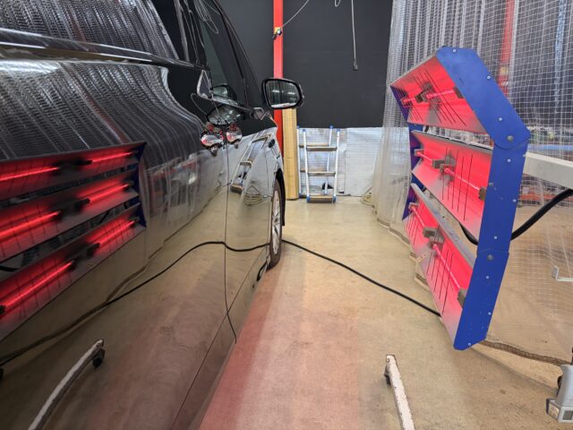 最後の仕上げとして鏡面研磨を行い、ライトを当てないと見えないような微細な線傷まで消し込むことで、圧倒的な艶と光沢を実現します。この下地処理は仕上がりに直結する最も重要な工程です。同じガラスコーティングでも、ディーラーやカーショップ、専門店によって耐久性や見た目に大きな差が出るのは、この下地処理の内容やスタッフの技術力に違いがあるからです。