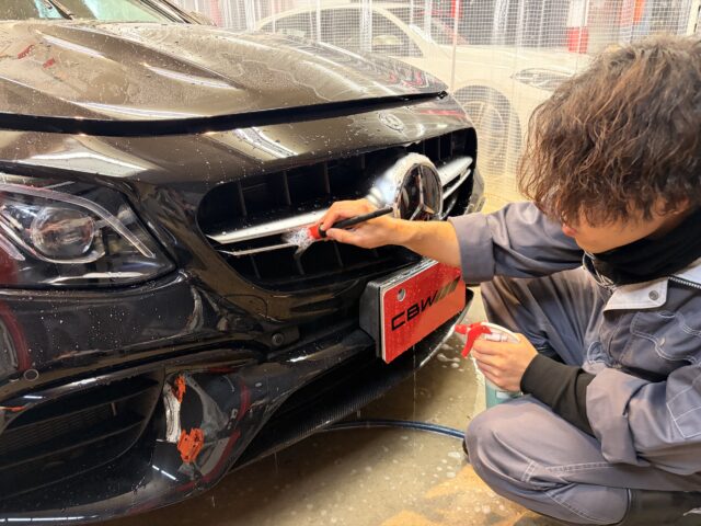 今回は、和歌山県海南市よりお越しいただきましたお客様のお車Mercedes-Benz・E-ClassにGガードコーティングを施工しました。今回は新車を購入し、長くきれいな状態で乗り続けたいということでご依頼いただきました。