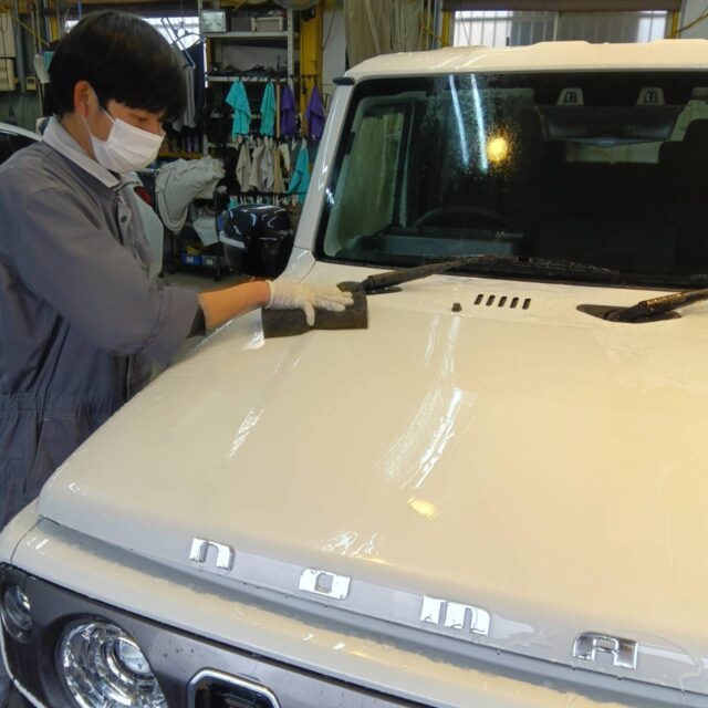 今回は、和歌山県和歌山市よりお越しいただきましたお客様のお車SUZUKI・ジムニーノマドにGガードコーティングを施工しました。今回は新車を購入し、長くきれいな状態で乗り続けたいということでご依頼いただきました。