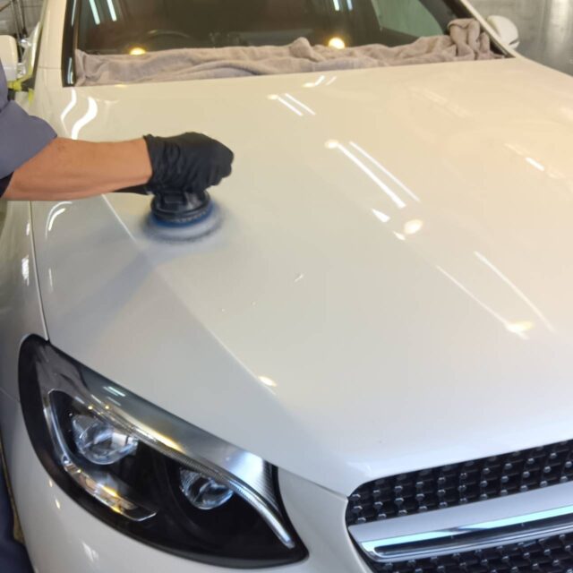 最後の仕上げとして鏡面研磨を行い、ライトを当てないと見えないような微細な線傷まで消し込むことで、圧倒的な艶と光沢を実現します。この下地処理は仕上がりに直結する最も重要な工程です。同じガラスコーティングでも、ディーラーやカーショップ、専門店によって耐久性や見た目に大きな差が出るのは、この下地処理の内容やスタッフの技術力に違いがあるからです。