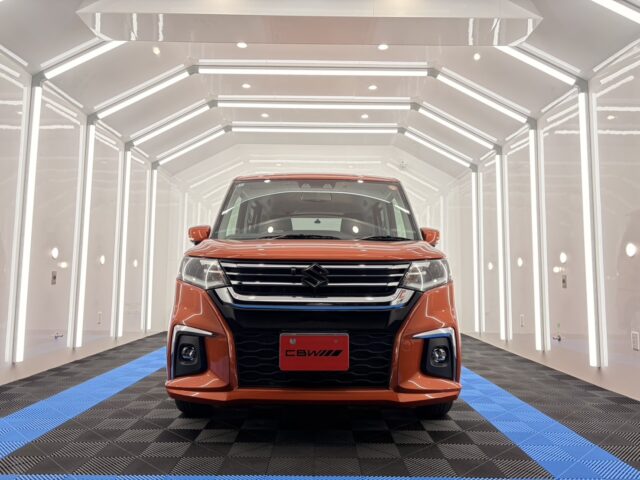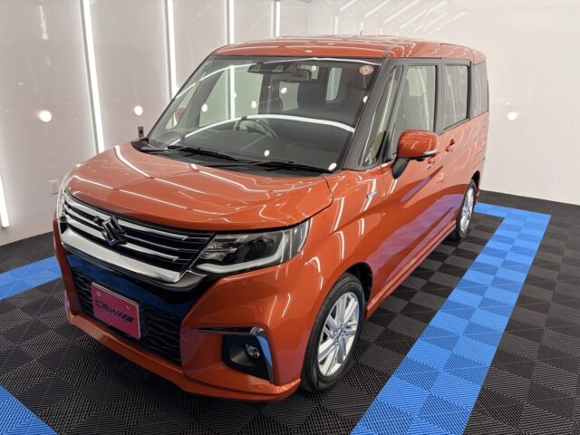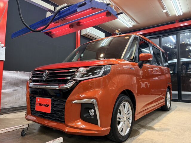 今回ご入庫いただいたのは、スズキ ソリオ(オレンジ)。コンパクトでありながら室内空間が広く、街乗りから送迎、買い物まで日常生活にしっかり寄り添う人気車種です。取り回しの良さと実用性を兼ね備え、「毎日使う車」として選ばれることが多い一台でもあります。