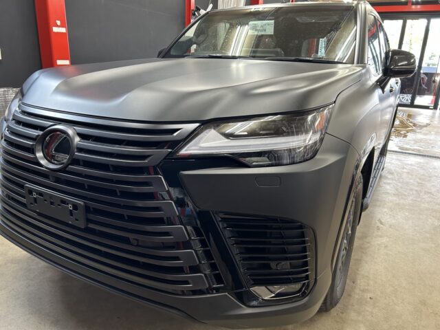 今回は、新車のレクサスLXをマットブラックでフルラッピング施工しました。