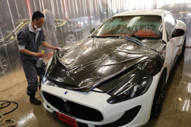 マセラティ「グラントゥーリズモ」ボンネットプロテクションフィルム施工