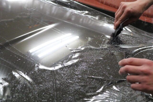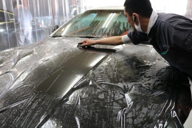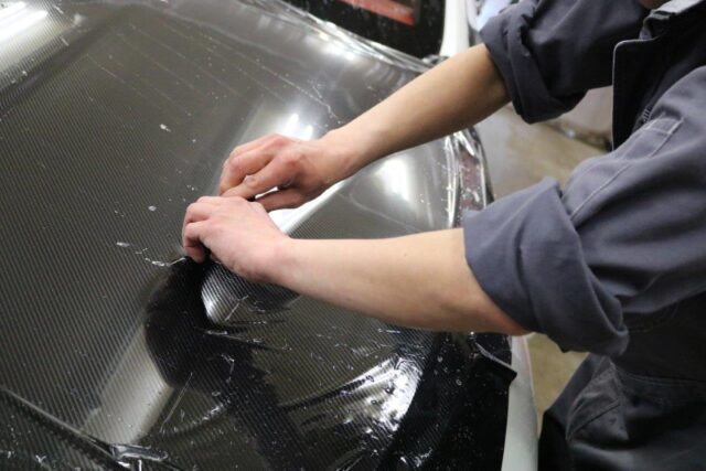 使用したフィルムは、stek「DYNOblack-carbon」を使用しました。プロテクションフィルムなのですが、グロスのカーボン柄でかなり高級感があります。
